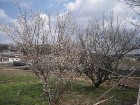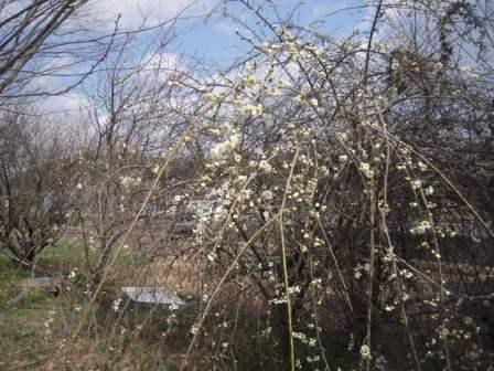 一昨日は氷が降り庭一面が真っ白になり、積雪のようでしたが、畑の枝垂れ梅が咲いてきています、他の小梅も咲いています。