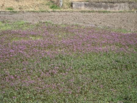 雑草の名前はわかりませんが畑にじゅうたんを敷いたような、温かみのある色合いで咲いています。