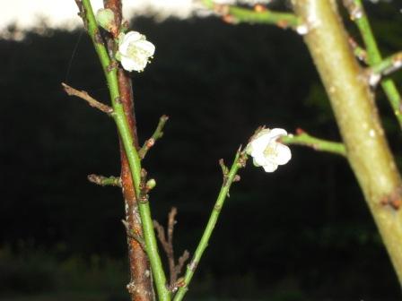 その横にある梅ノ木、なんと白い小さな花が咲いています。