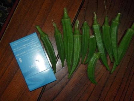 決して大味ではなく美味しいキュウリです、そしてオクラも収穫してきました親父殿の好物です。