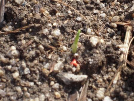 一本のとがった芽が天に向かって伸びていきます、そして葉が出てやがて美味しいトウモロコシになるのですが、芽が出た段階では想像がつきません。