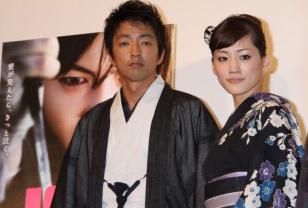 ※ 画像は 映画ICHI の1シーン と 記者会見あいさつ時の大沢たかおさんと綾瀬はるかさん
