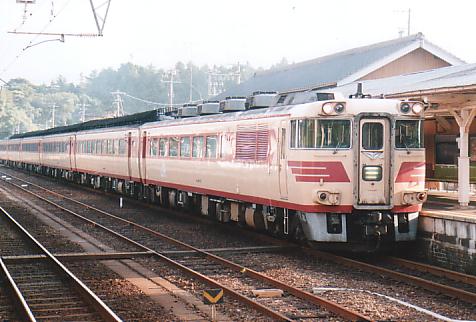 私は今年(平成18年)3月17日に廃止された、関西本線の急行「かすが」号の上り最終列車に惜別乗車しました。その様子を少しレポートさせていただきます。当日は伊賀上野から名古屋までの乗車でした。「かすが」号到着を待つ伊賀上野駅には沢山のファンが集まり最後の雄姿を収めようとカメラを向けておりました。やがて17時58分、列車は日没前の夕日を浴びて、いつものように3番線に滑り込みました。先週末と同じく4連に増結されていましたが、ラスト・ランによくある惜別のヘッドマークなどの飾り付けもなく「かすが」らしい控えめな最後となりました。唯一、車掌室に誰かが送ったと思われる花束が置かれていたことが最終運転であることを伝えていて、少し嬉しい気持ちになりました。車内の様子は、自由席は立ち客もおられましたが、指定席は満席というほどではなく、惜別乗車と思しき乗客による静かな車内でありました。途中、JR西日本車掌による最後の運転であることの案内放送がありました。次の停車駅の柘植駅でも見送りのファンが駆けつけておられ、見送られながら最後の加太越えに向かいました。夕暮れの山中、「かすが」は通い慣れた鉄路をしっかりと確かめるように走り続け、亀山駅に到着。ここで行われるJR東海乗務員への引継ぎも厳粛な雰囲気にて行われました。(続く) |