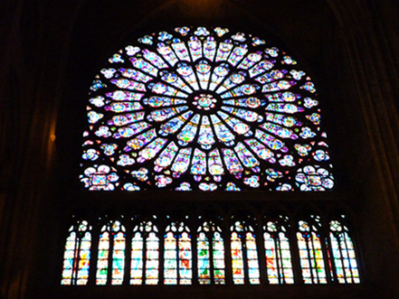 ノートルダム寺院のステンドグラスはかなりピンボケやなぁ…