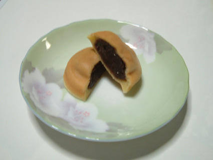意外に小粒?な感じです。皮が餅粉で作ってあるので触感はもちっとしています。つぶあんは少々甘め でもしっとりしてます。