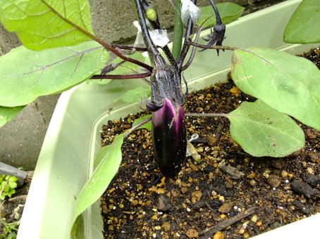 なぜか茄子に花が咲く!うれしいやら…ちょっと早くない?