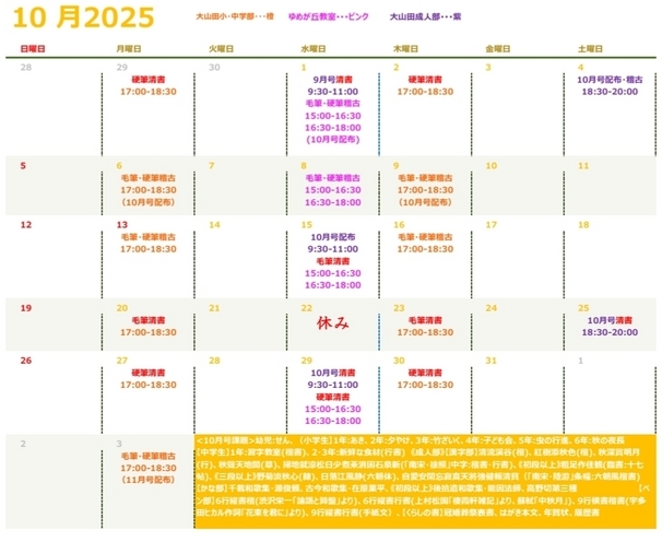 10月はゆめが丘教室が1回お休みとさせていただきます。