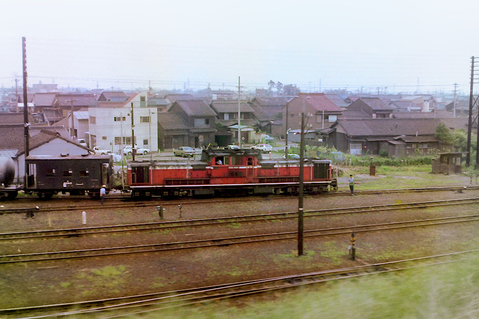 関西本線の亀山電化は、1982(昭和57)年5月。名古屋駅の隣の非電化の八田駅で、左)画像、DD51による入換作業が行われていたとは、いかにも古き良き国鉄時代を偲ばせる。残念ながらDD51何号機かは読めず。