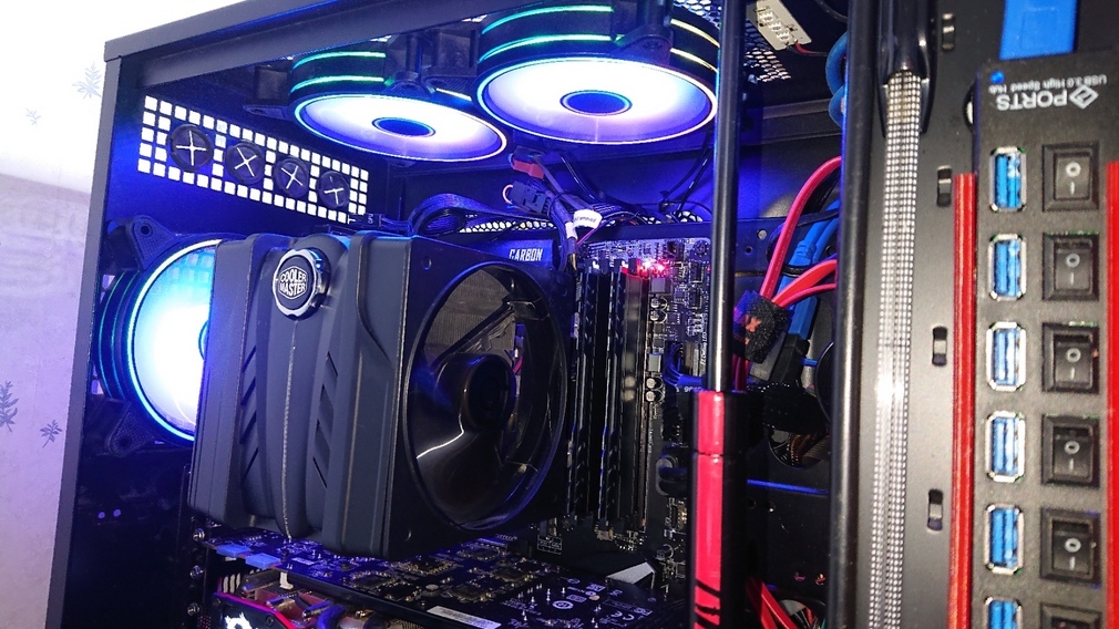 RGB6機のファンセットちなみに、PWM対応のタイプもありますので、5000円程度ですが5機でOKなら、それもオススメです。