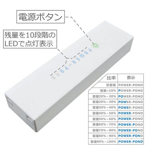 まず、電源オン/OFFできるボタンがあり その横にー P O W E R - P O N D の文字が光るんですが 光ってる数で容量がわかるようですね