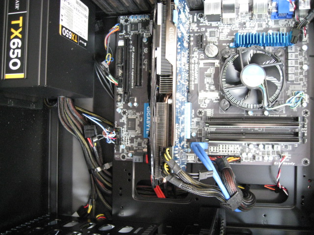 前作との配線の違いは メインの電源ケーブルと VGA電源 USB3.0のケース用配線ケーブルを↑側のホールから出しスッキり結線させました。