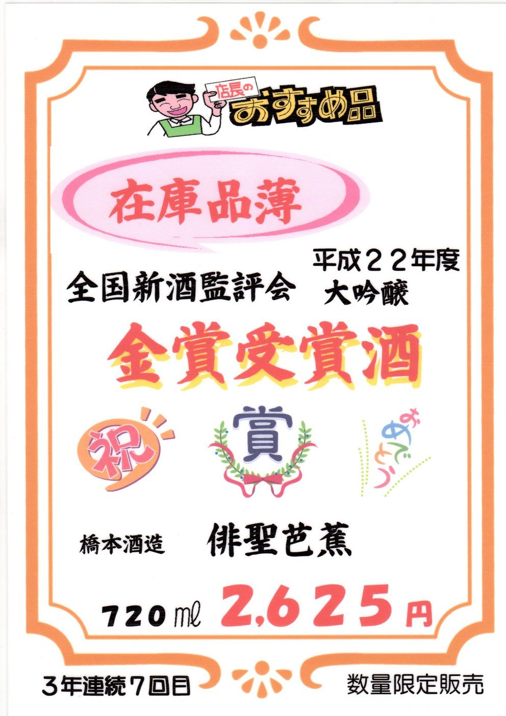 3年連続7回目の受賞 小さな蔵元だ