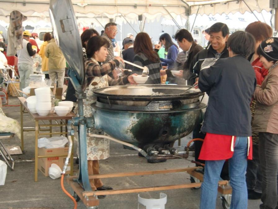 会場で地区の人達が集まり年に一度のお祭りがなされ