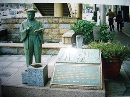 道橋、西側の真下に西嶋八兵衛の銅像を建て
