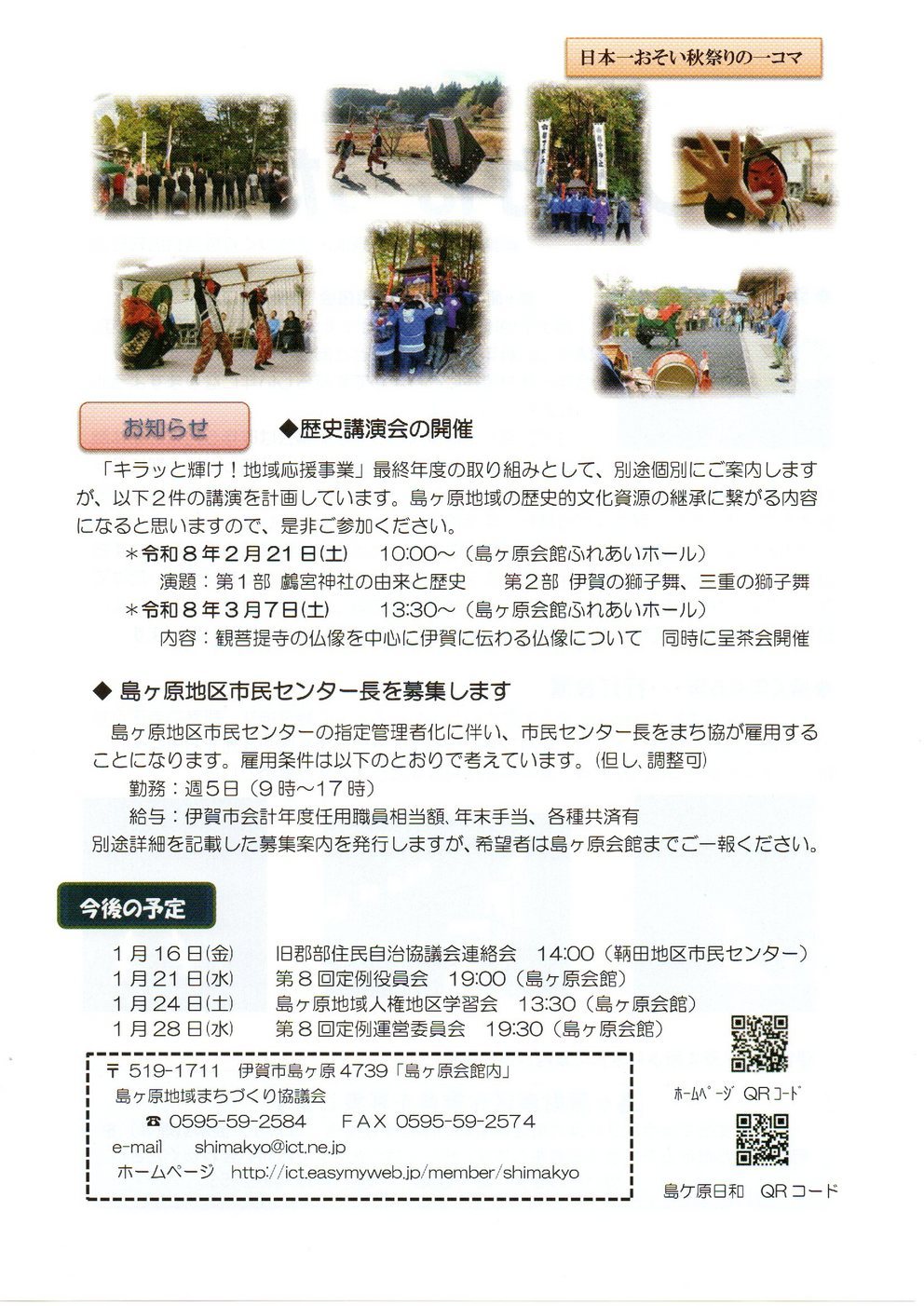しまがはらだより114号発行・歴史講演会案内(1/16)