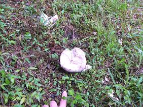 季節は、早くも秋です。一昨日、我が家の裏で純白の球形の物体発見、きのこの一種、「鬼ふすべ」でした。ハンドボールほど、直径15cmほどでした。茶色くなってサッカーボールくらいになるはずなので、成長を見守ることに。珍しいものがあるよと家族に紹介。しかしその直後、我が家の「武蔵」乱入。白いボールと間違われ、無残な姿になってしまいました。
